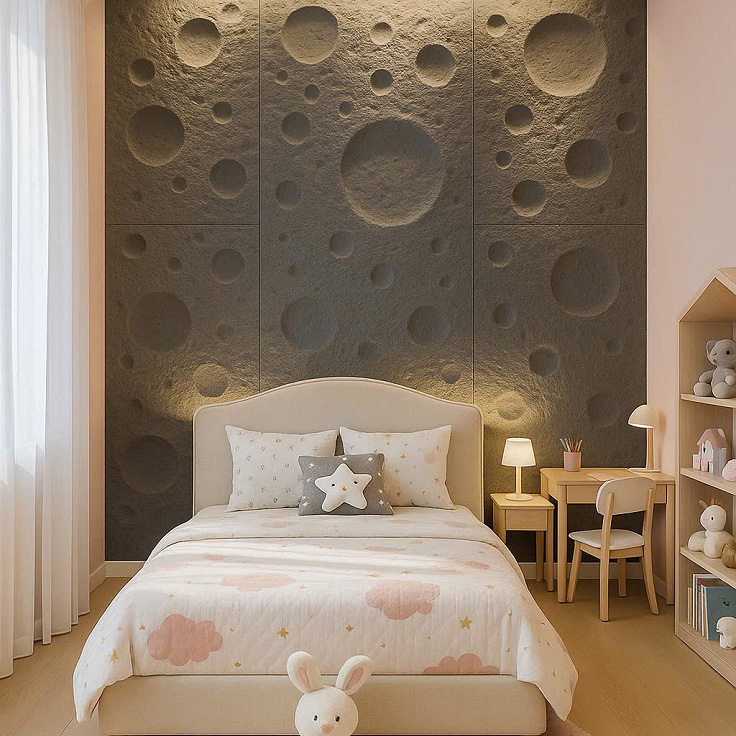 Tấm PU giả đá vân mặt trăng rất phù hợp để lát tường, vách ngăn hoặc làm trang trí tường trong không gian phòng khách, phòng ngủ, phòng bếp, và phòng tắm. Họa tiết vân đá nhẹ nhàng, tựa như ánh sáng mặt trăng sẽ tạo nên một không gian thư giãn, ấm cúng nhưng không kém phần sang trọng.